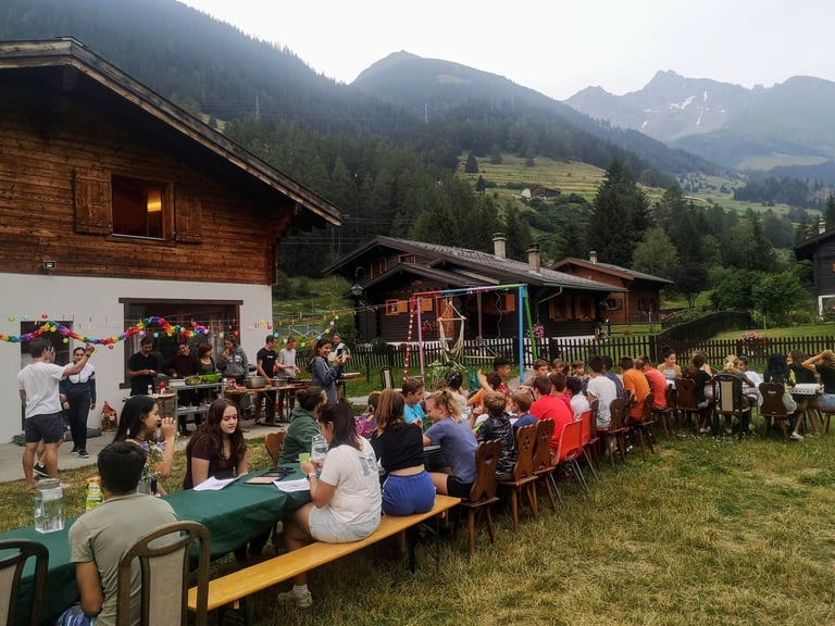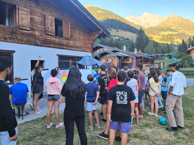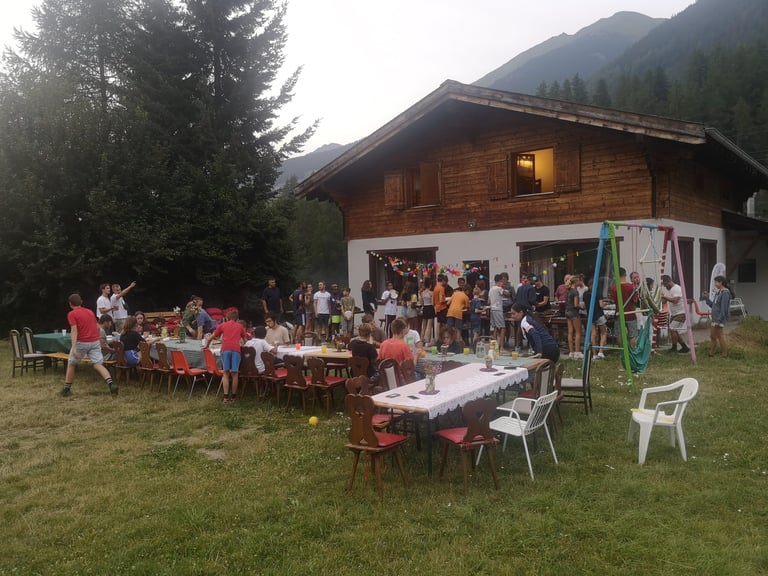 I believe it makes more sense for us to organize for the last week everything in Liddes. We will have about 15 to 20 kids there, and it can also be a chance to see another place. We can include excursions to Bern and Lausanne. Instead of summer sledging, we can do monster trottinette which is more fun. Since things are close, we can plan more excursions. On the free day, we could take a bus to Champex Lake. The Pass Saint Bernard is also very interesting.