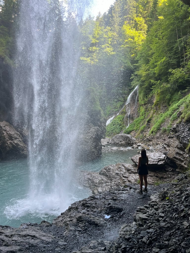 Our day commences with a tranquil 1-hour hike along a shimmering river, leading us to Tierfed. From there, the Luftseilbahn Tierfed carries us skyward, a thrilling aerial cable car revealing breathtaking mountain vistas. As we ascend, a panorama of jagged peaks and emerald valleys unfolds, a symphony of nature's grandeur. At the summit, a 45-minute trek through a remarkable tunnel, carved into the mountain for the reservoir, awaits. This fusion of natural splendor and human innovation is truly captivating. We then stand before the imposing dam wall, a powerful testament to engineering prowess. The adventure culminates with a visit to the cascading Berglistüber waterfall, where the raw power of nature is on full display. This day offers an unforgettable sensory journey, weaving together the wonders of nature and the ingenuity of humankind.